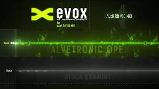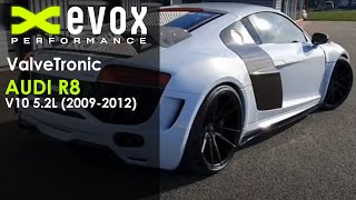 The Silent ValveTronic EVOX system designed for AUDI R8 MKI V10 5.2Land placed in open position delivers a hoarse, aggressive, metallic and captivating sound. Your AUDI R8 MKI V10 5.2L is deeply transformed.