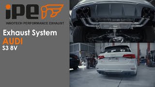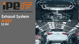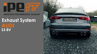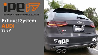 The Audi S3 8V refined with an iPE Innotech Performance Exhaust system produces an extremely loud and aggressive sound as well as a comfortably quiet cruise by the push of a button when wished for.