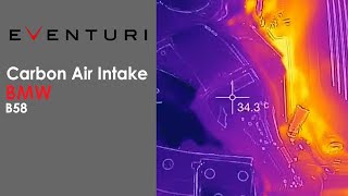 Le système B58 Eventuri utilise le boîtier en fibre de carbone breveté qui fournit un chemin de flux d'air aérodynamiquement efficace du filtre au turbo. Pas seulement un autre filtre conique avec un écran thermique, mais une conception unique qui invoque l'effet Venturi et maintient les conditions d'écoulement laminaire pour réduire la traînée sur le turbo.